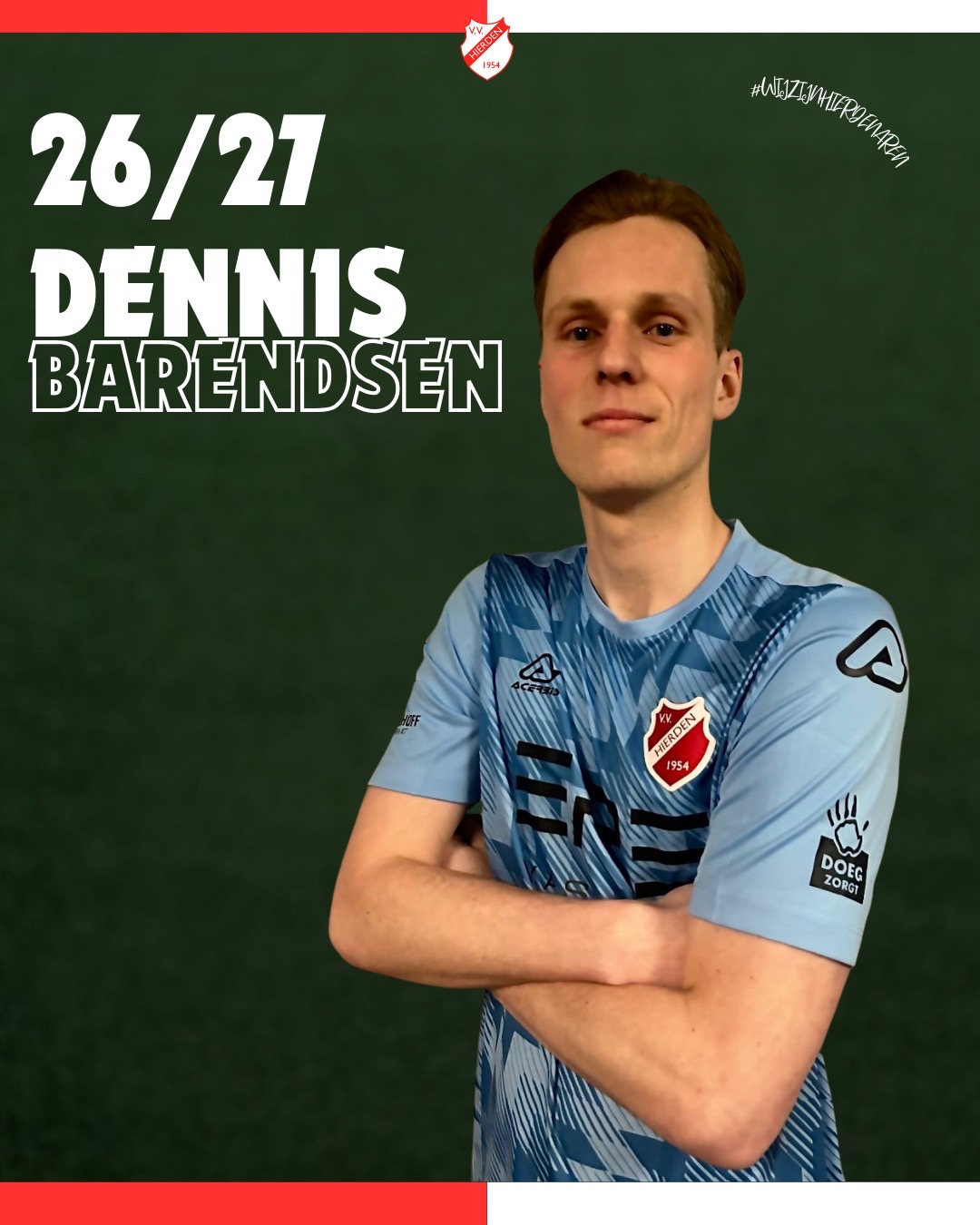 Wij heten Dennis van harte welkom bij v.v. Hierden en wensen hem veel succes en plezier in het rood-wit!